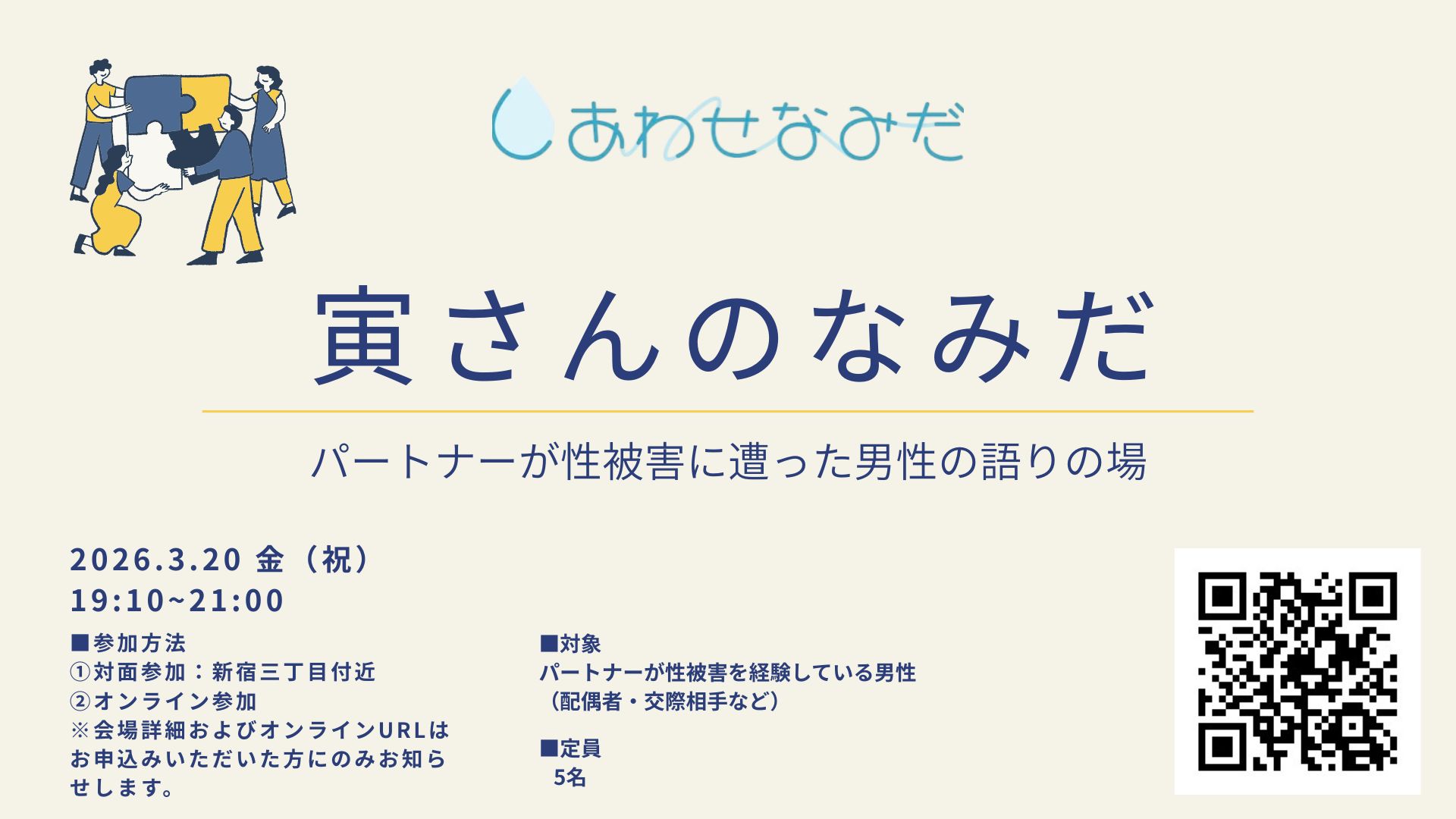 パートナーが性被害を経験している男性のための語り場「寅さんのなみだ」を開催します。